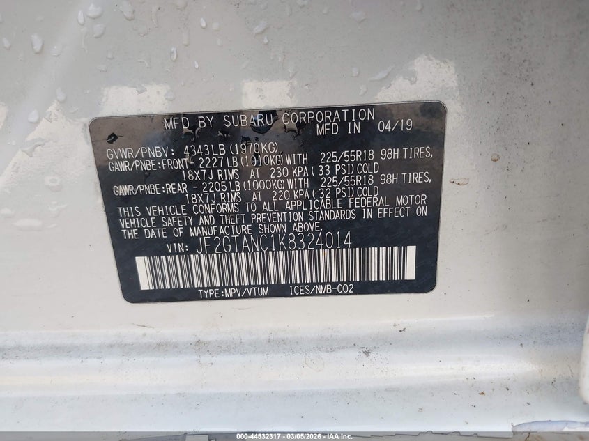 VIN: JF2GTANC1K8324014
