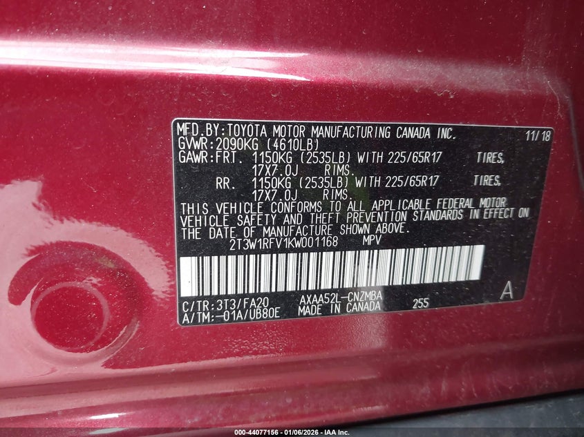 VIN: 2T3W1RFV1KW001168