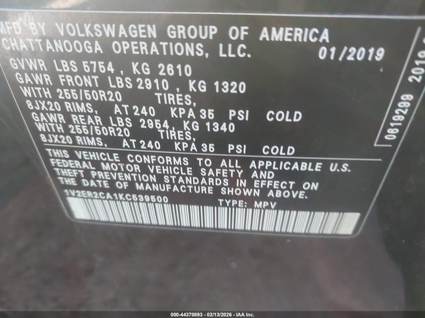 VIN: 1V2ER2CA1KC539500