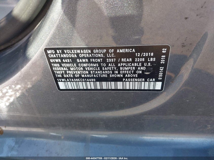 VIN: 1VWLA7A36KC014480