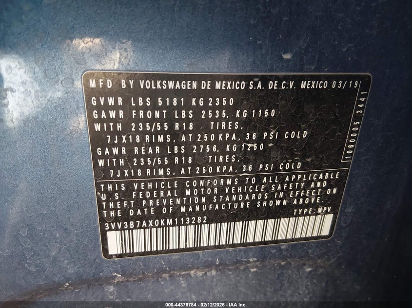 2019 VOLKSWAGEN TIGUAN 2.0T SE/2.0T SEL/2.0T SEL R-LINE/2.0T SEL R-LINE BLACK