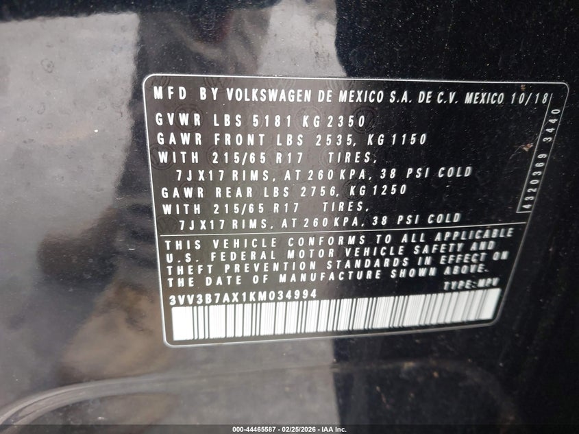2019 VOLKSWAGEN TIGUAN 2.0T SE/2.0T SEL/2.0T SEL R-LINE/2.0T SEL R-LINE BLACK