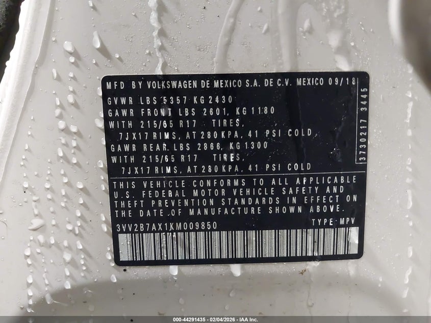 VIN: 3VV2B7AX1KM009850
