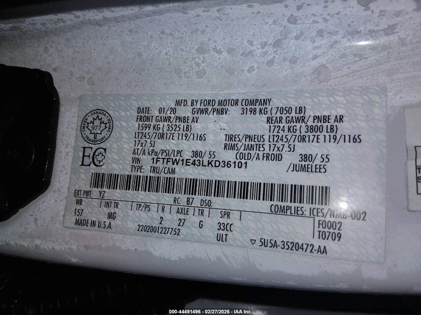 VIN: 1FTFW1E43LKD36101