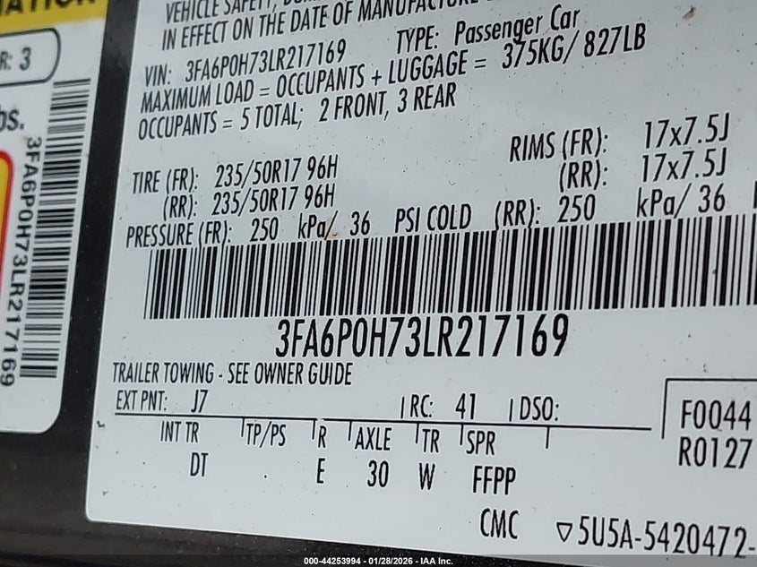VIN: 3FA6P0H73LR217169