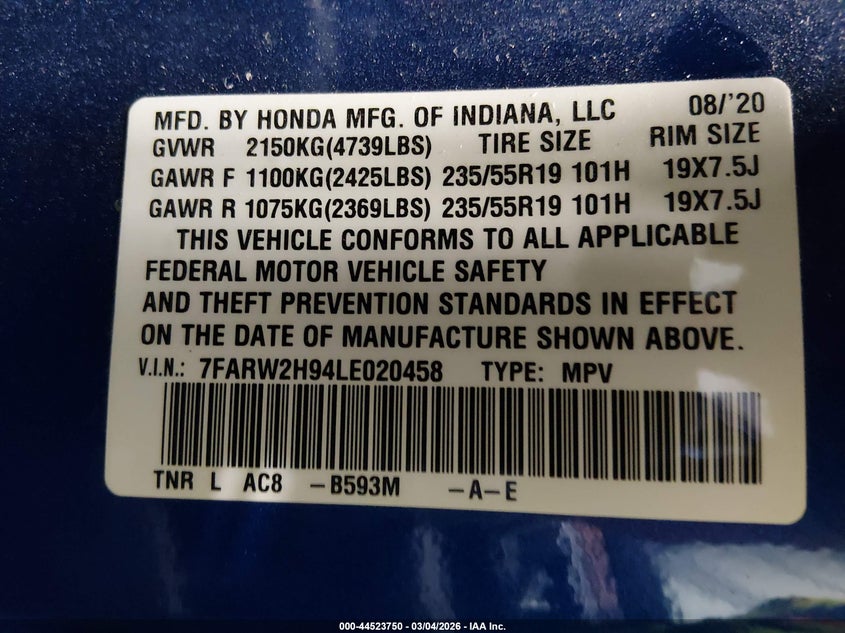 VIN: 7FARW2H94LE020458
