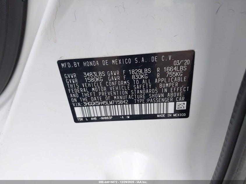 VIN: 3HGGK5H45LM715842