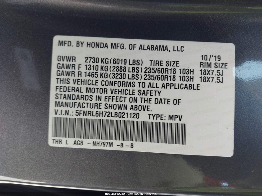 2020 HONDA ODYSSEY EX-L/EX-L W/NAVI RES