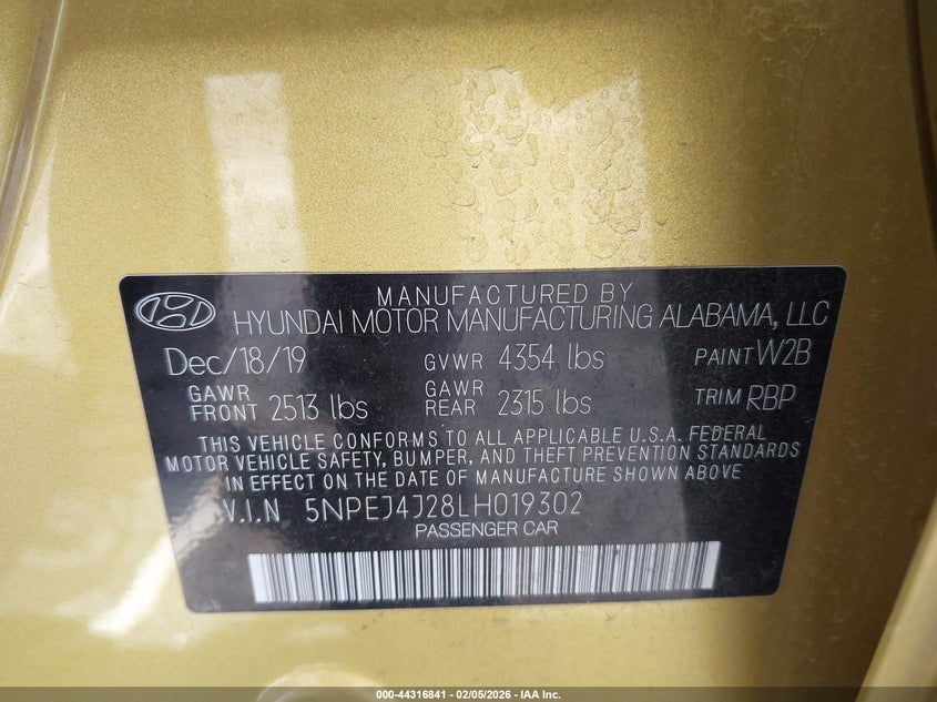 VIN: 5NPEJ4J28LH019302