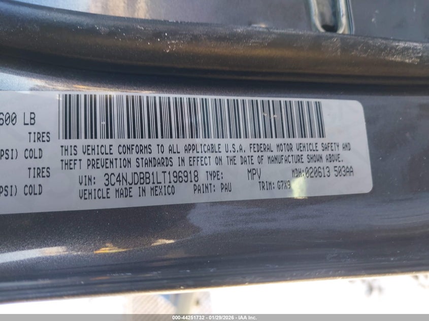 VIN: 3C4NJDBB1LT196918