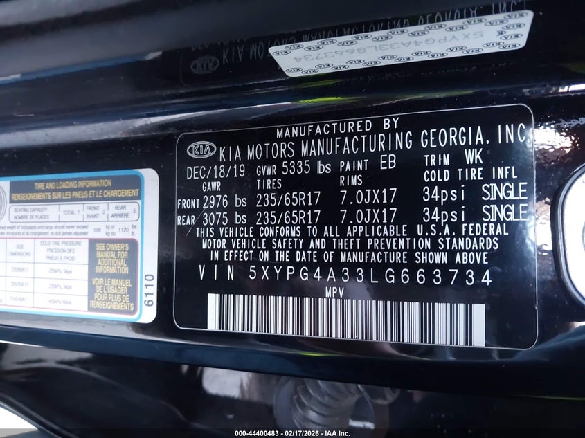 VIN: 5XYPG4A33LG663734