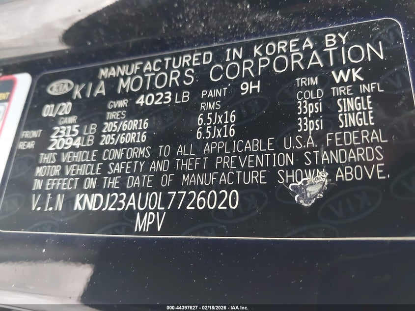 VIN: KNDJ23AU0L7726020
