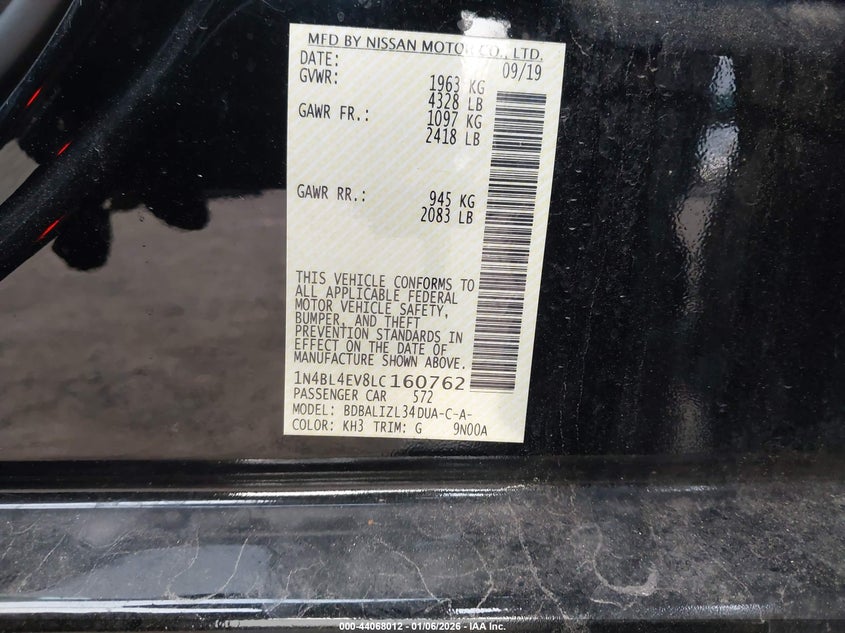 VIN: 1N4BL4EV8LC160762