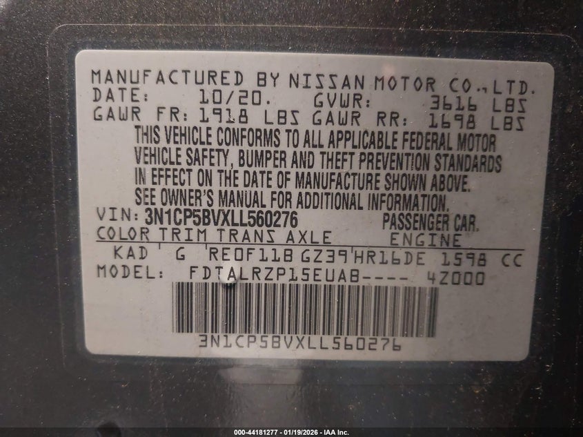 VIN: 3N1CP5BVXLL560276