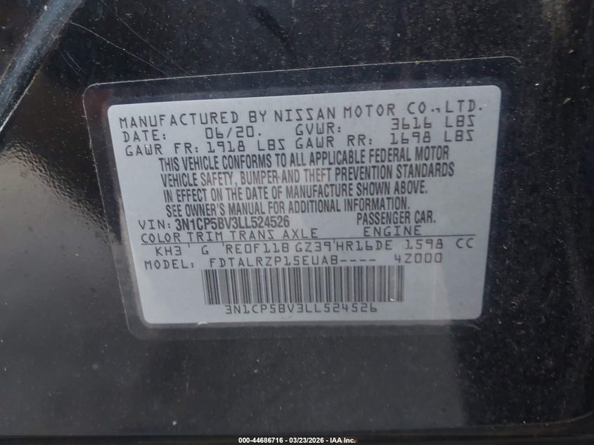 VIN: 3N1CP5BV3LL524526