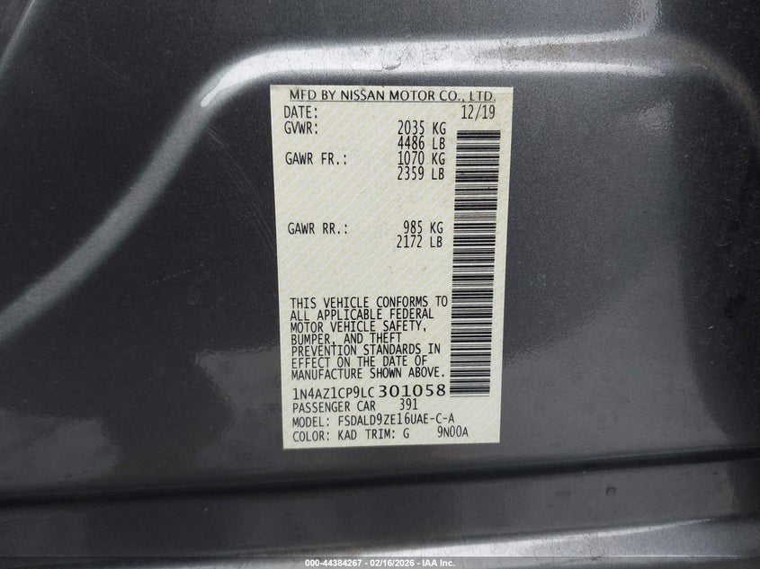 VIN: 1N4AZ1CP9LC301058