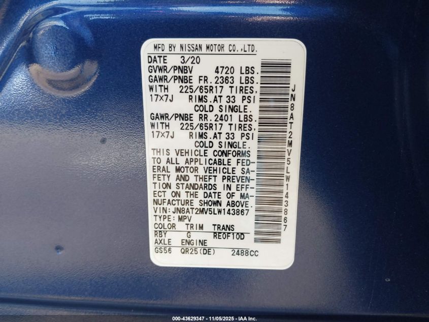 VIN: JN8AT2MV5LW143867