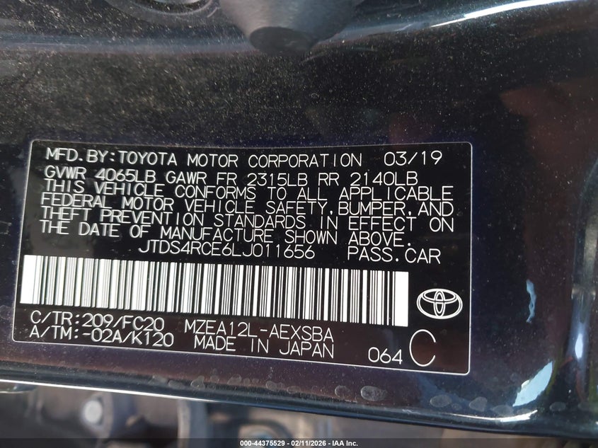 VIN: JTDS4RCE6LJ011656