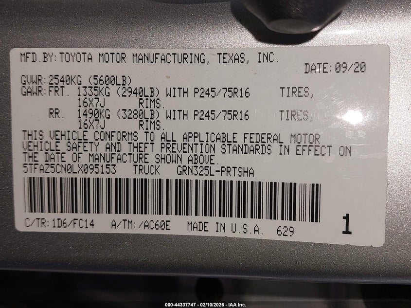 VIN: 5TFAZ5CN0LX095153