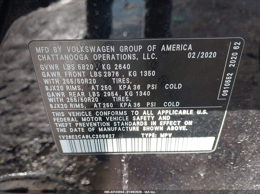 VIN: 1V26E2CA9LC208827