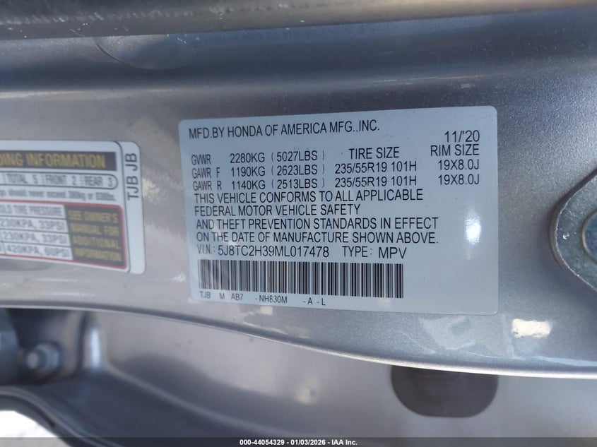 VIN: 5J8TC2H39ML017478