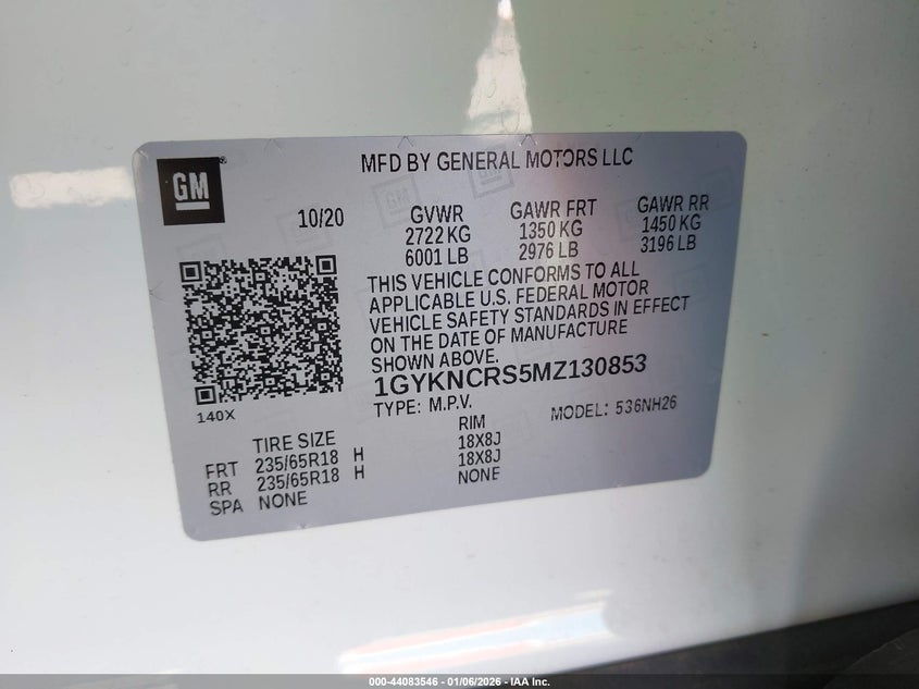 VIN: 1GYKNCRS5MZ130853