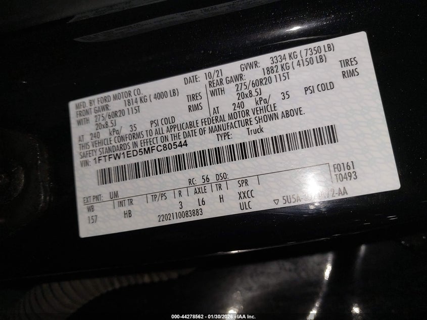 VIN: 1FTFW1ED5MFC80544