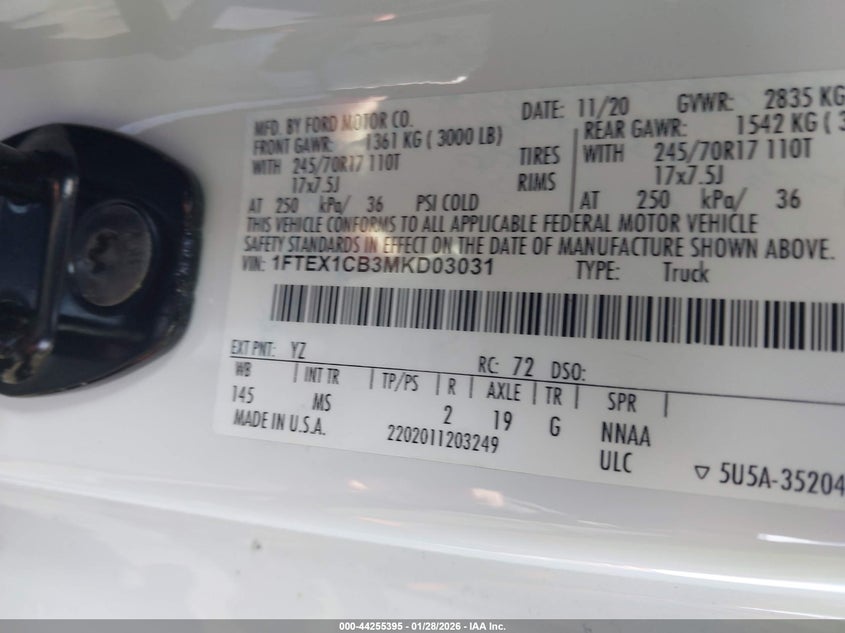 VIN: 1FTEX1CB3MKD03031