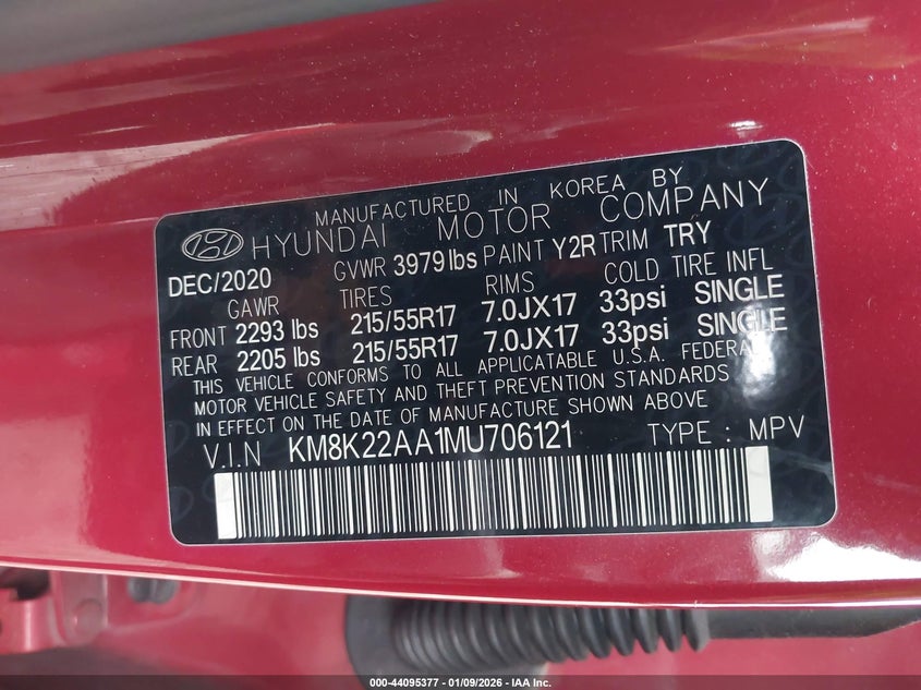 VIN: KM8K22AA1MU706121