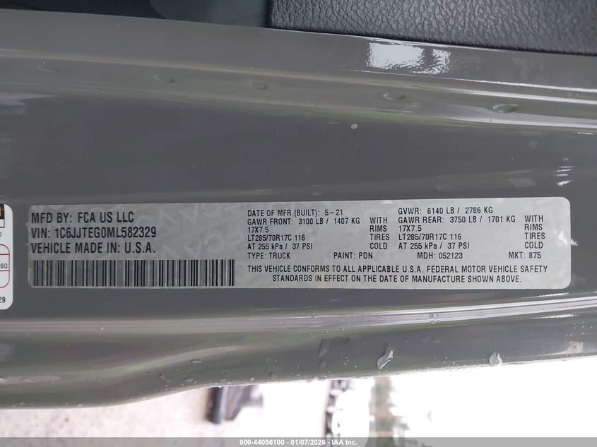 VIN: 1C6JJTEG0ML582329