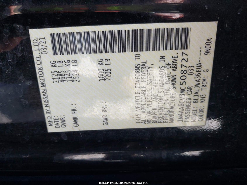 VIN: 1N4AA6CV3MC508727