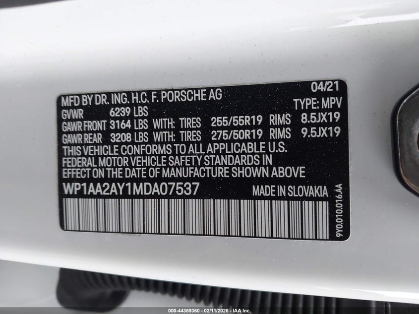 VIN: WP1AA2AY1MDA07537