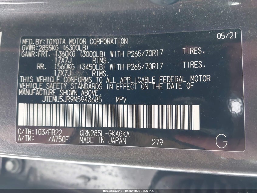 VIN: JTEMU5JR9M5943685