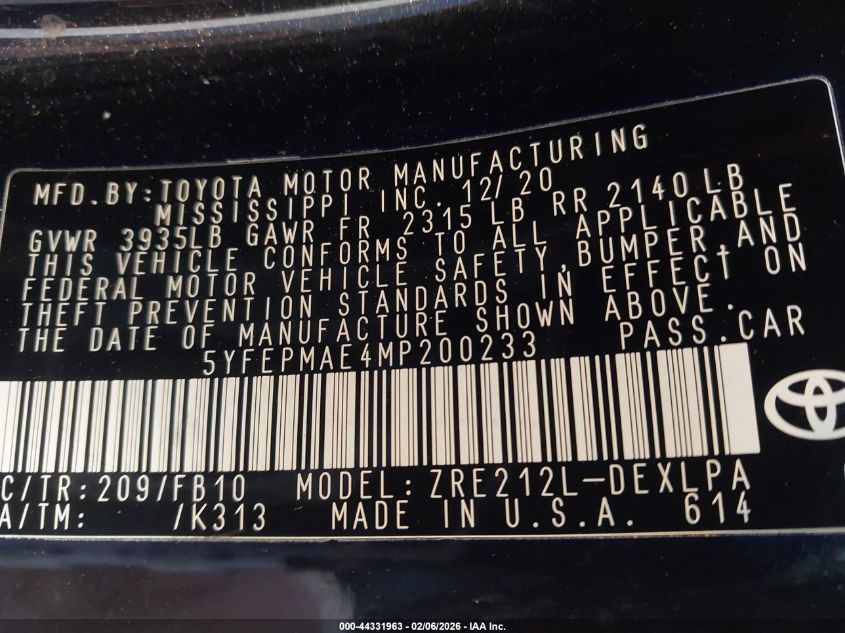 VIN: 5YFEPMAE4MP200233