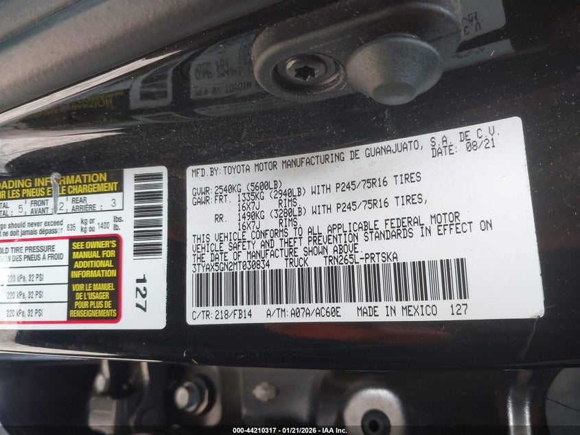 VIN: 3TYAX5GN2MT030834