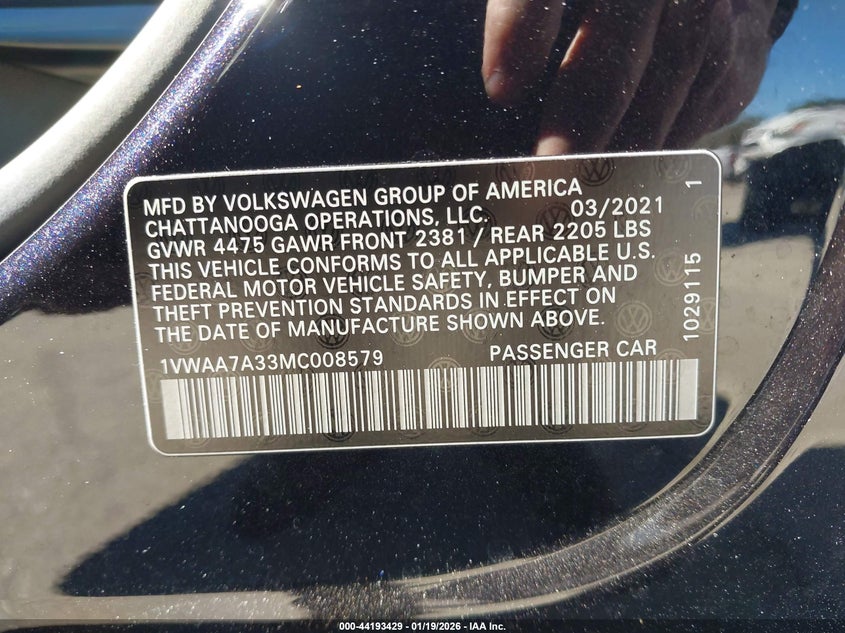 VIN: 1VWAA7A33MC008579