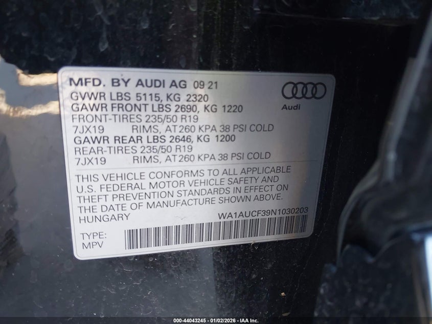 VIN: WA1AUCF39N1030203