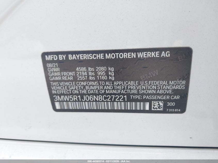 VIN: 3MW5R1J06N8C27221