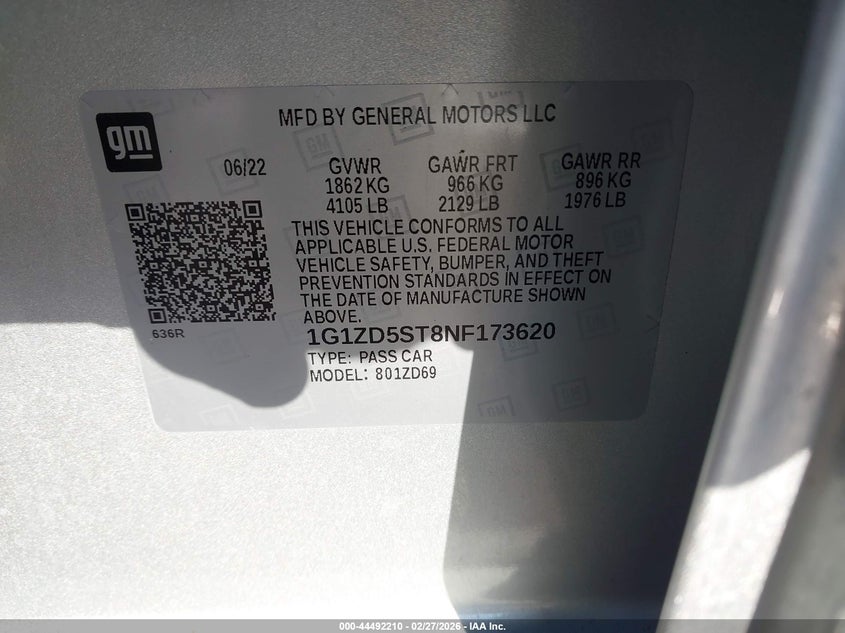 VIN: 1G1ZD5ST8NF173620