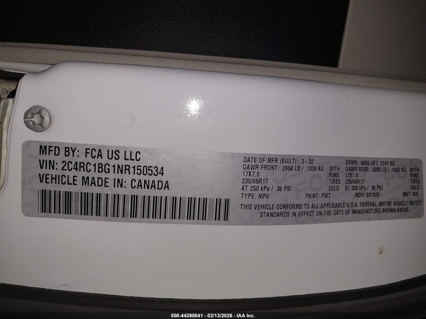 VIN: 2C4RC1BG1NR150534