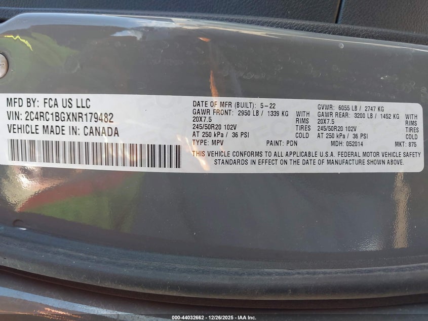 VIN: 2C4RC1BGXNR179482