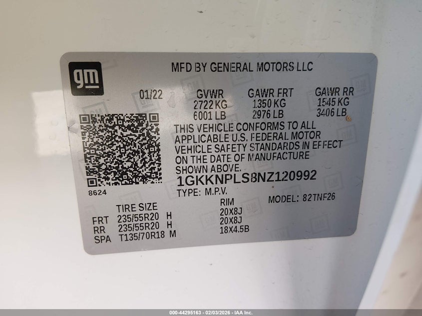 VIN: 1GKKNPLS8NZ120992