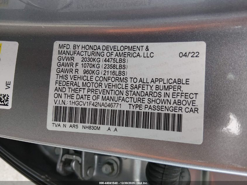 VIN: 1HGCV1F42NA046771