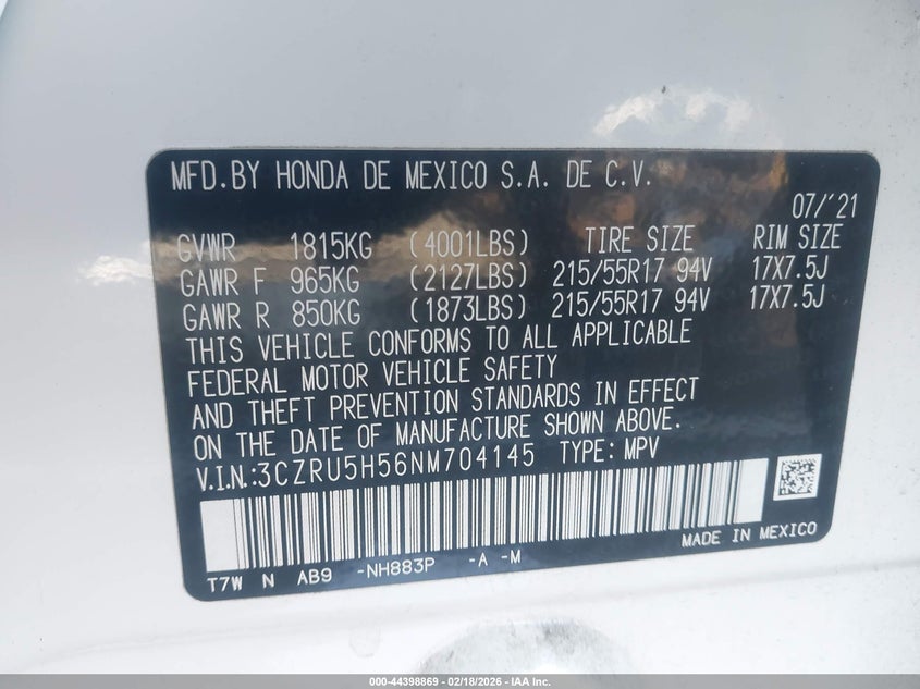 VIN: 3CZRU5H56NM704145