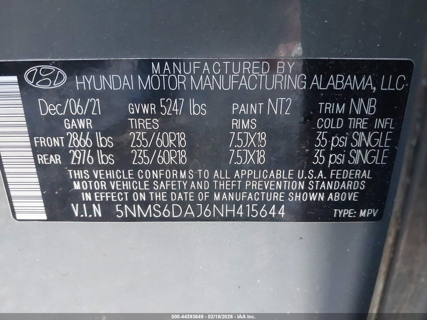 VIN: 5NMS6DAJ6NH415644