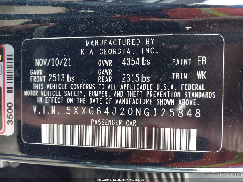 VIN: 5XXG64J20NG125848