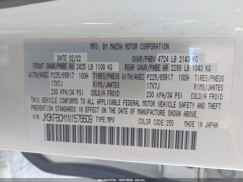 VIN: JM3KFBCM1N1576609