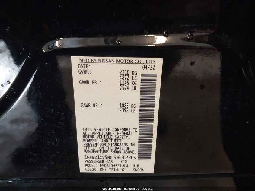 VIN: 1N4BZ1CV5NC563245