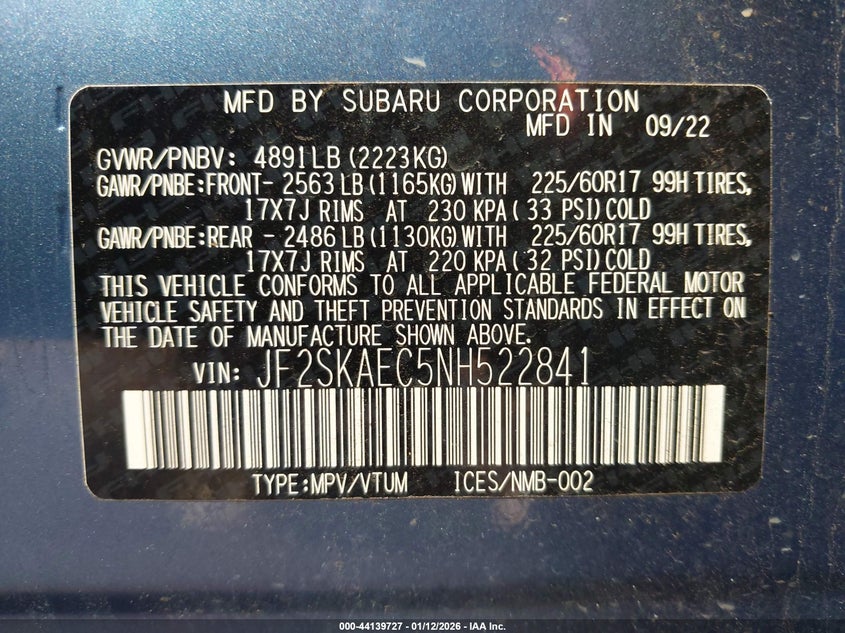 VIN: JF2SKAEC5NH522841