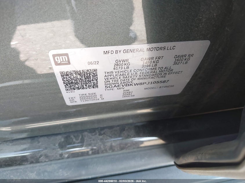 VIN: 5GAEVBKW8PJ105587